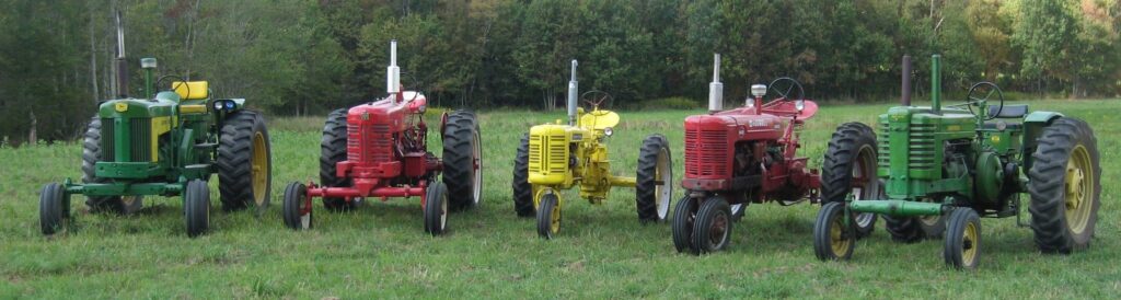 Current parts tractors inventory: FARMALL Models A, Super A, B414, C, SC, H, M, 240, 300, 350, 400, 450, 460, 560, IH 340, 454, 504, 574; ALLIS CHALMERS WD-45, D14, D17; JOHN DEERE A, G, GP, MT, 730, 2010; MASSEY HARRIS 33; OLIVER 70 ( Not all tractors pictured ) Engines etc. require a deposit before removal – contact for details