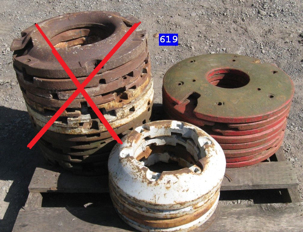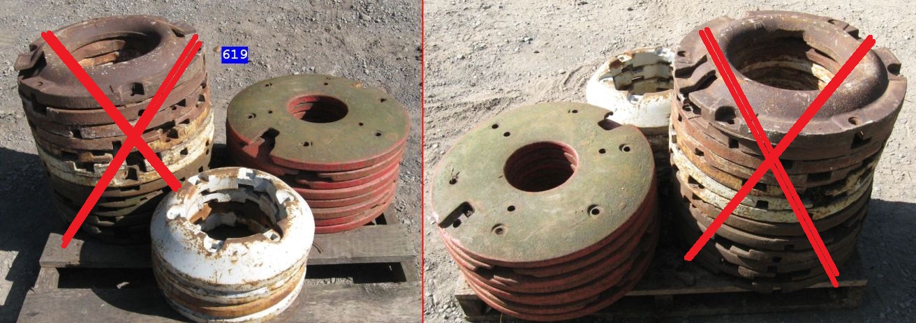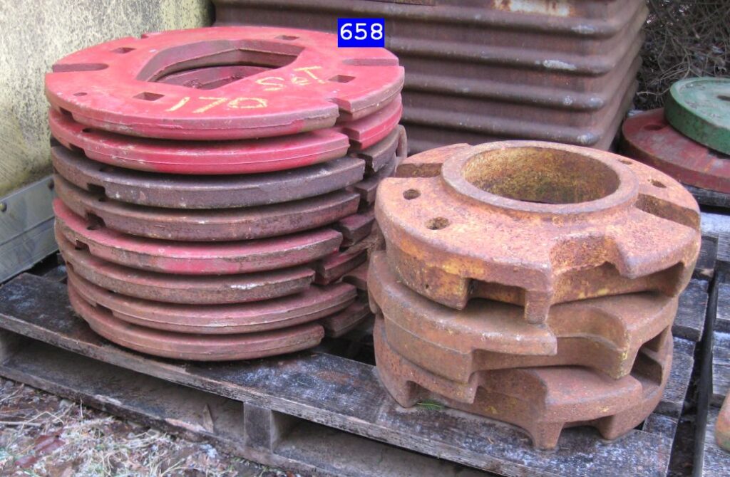IH wheel weights $170.00 a set and John Deere wheel weight #D2628R….fits 2 cyl A,B,G etc have 3 …priced at $250.00 a pair (2) John Deere wheel weight # D2628R….fits 2 cyl A,B,G etc have 3 …$250.00 a pair (2) …Oliver stack weight $100.00 casting # 105250 AFord weights $160.00 a set ( 2 ).JD and misc wheel wts price as marked John Deere wheel weights casting # R28520R $ 300.00 set Ford Pie weights and misc IH wheel weights $ callAssorted weights… Call MikeJohn Deere front and rear wheel weights for John Deere M, MT, 320, 40, 420, 430, etc… $350.00 a set for casting # M1168T (front weights) JD rear weights casting # D2628R…. Fits JD A, B, G, etc… $250.00 setJohn Deere slab weight for JD 420, 430, etc. Casting # M1854T. $250.00AC and MF suitcase weights. AC wheel weights and IH 574 wheel weights. Call Mike!JD slab starter weight$350.00 a set. Also have slab weights available.Ford weights $400.00More weights – Call!Miscellaneous Farmall weights. L shaped frame, casting # 371258-R1, fit Farmall 300, 350 utility. 2 Kubota weights